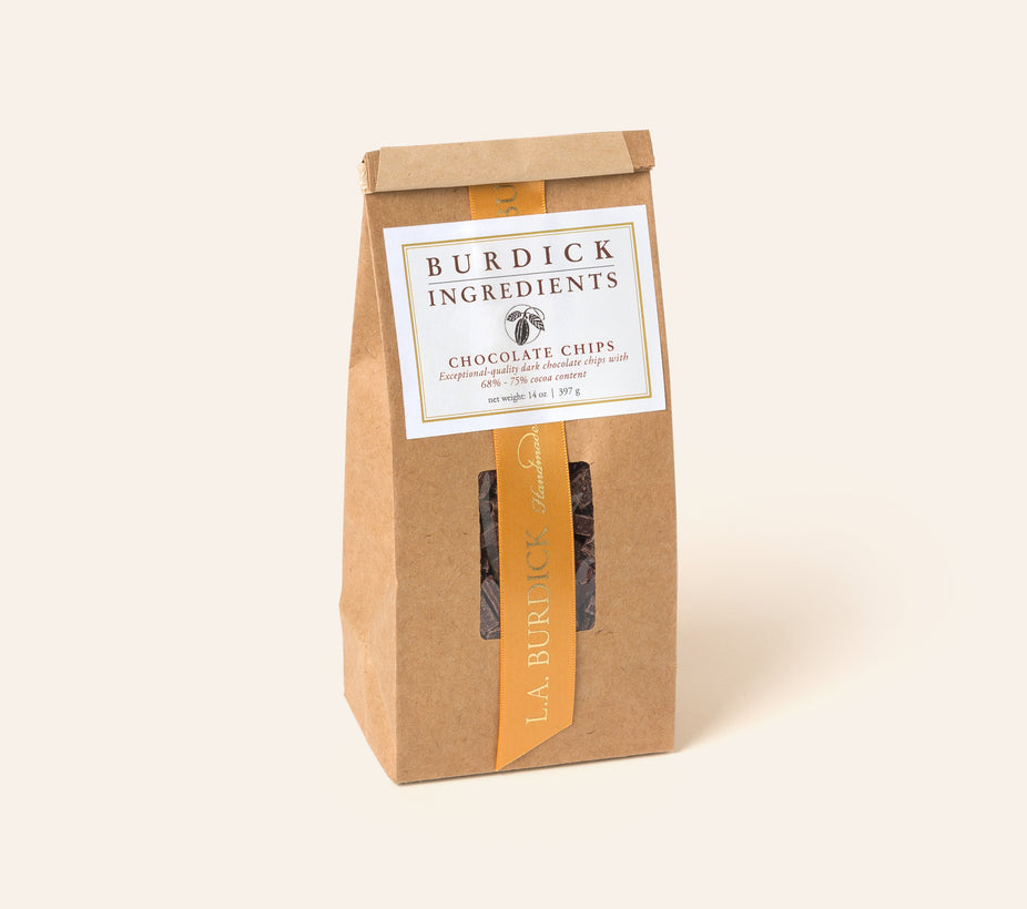 Created by talented humans, using only bowls, trays, a spatula and a knife. Nothing is mass-produced by machine. Our Chocolate Chips are a blend of chocolate from Caribbean and South American cocoa beans, the cradle of chocolate excellence. This exceptional blend of dark chocolate is carefully tempered, hand-poured, and spread with a spatula to a thickness less than 3/8 of an inch. After a brief rest in one of our cool rooms, they are then diced by hand, ready for bagging.