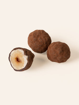 A delicious medley of almonds, cashews, and hazelnuts roasted, caramelized, and covered with dark chocolate. They are made even more flavorful with a touch of cardamom, cinnamon, saffron, and ground coffee.