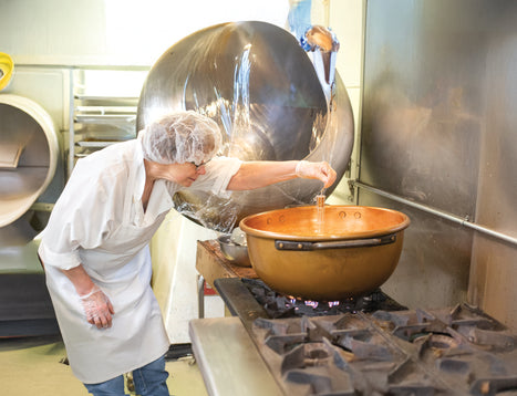 Our caramels are slow-cooked in copper pots, then hand-poured and hand-cut with meticulous care. Each piece is enrobed in our signature house-blend chocolate. Their remarkably rich flavor and velvety smoothness come from exacting craftsmanship and exceptional ingredients, beginning with fresh, glass-bottled cream from a beloved third-generation family farm in New Hampshire, just miles from our kitchen.