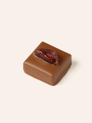 We slow-cook real fruit to preserve its lively flavor and tart-sweet balance, pour it into delicate sheets, and hand-cut the jelled fruit into delicate, succulent squares. Each piece is finished with a layer of our signature house-blend dark, milk, or white chocolate, a rich contrast to the bright, jelled fruit within.