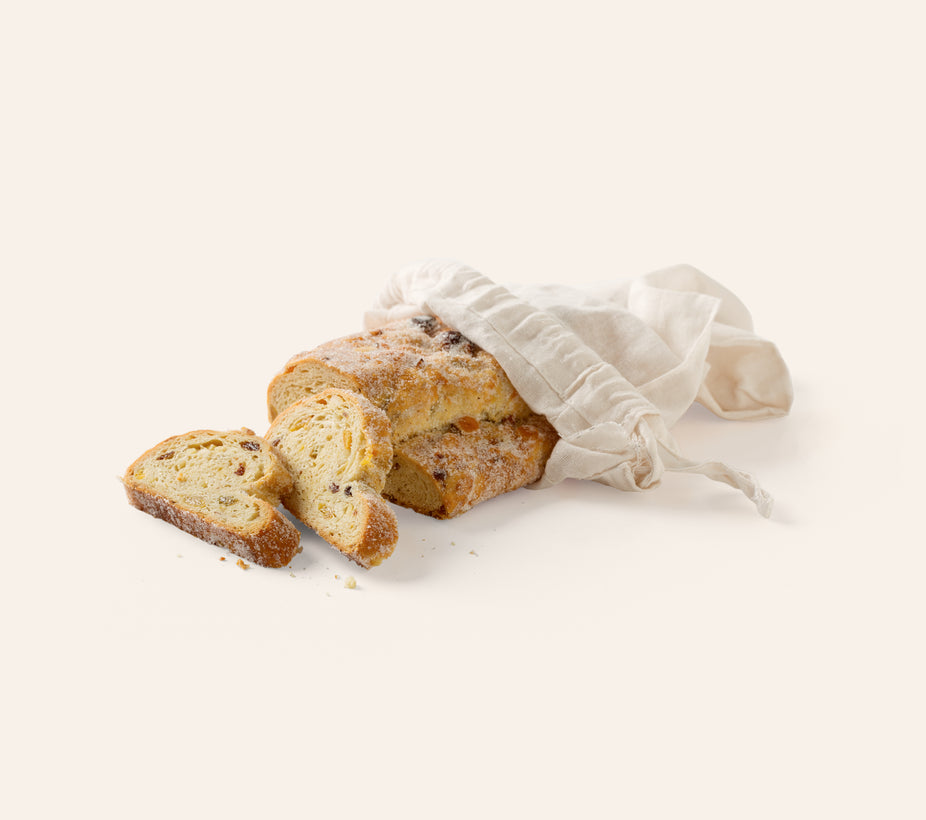 We have been baking this classic German Christmas bread every winter for 20 years. Each hand-kneaded and hand-shaped loaf is deliciously filled with almonds, rum-soaked raisins, candied orange and lemon peels, and warm spices. Comes in a charming cotton muslin bag.