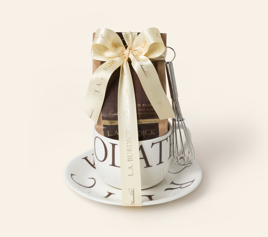 Pour our deliciously rich Burdick Blend Dark Drinking Chocolate in our distinctive signature cup crafted of kiln-fired porcelain, the same we use every day at our cafés.