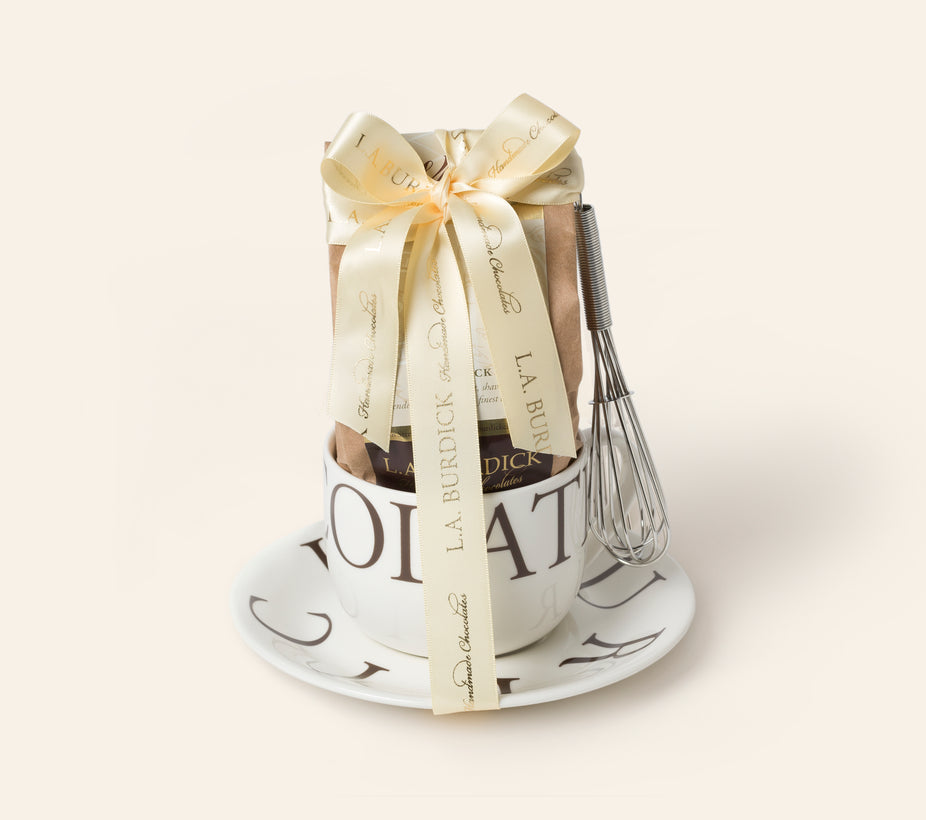 Our distinctive signature cup, crafted of kiln-fired porcelain, is perfect for indulging in our luscious White Drinking Chocolate.