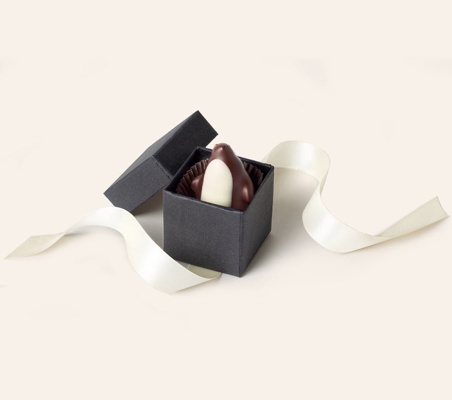 The toasted almond wings of our Chocolate Penguin welcome everyone to the party. Chocolate Penguins are handcrafted from whipped dark chocolate ganache with a hint of fresh lemon.