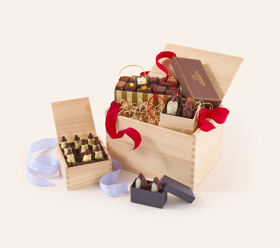 Filled with signature creations and wintry wonders, there is no better way to enjoy a taste of Burdick’s this festive season than the Holiday Crate. The gift crate includes Chocolate Mice, Chocolate Snowmen, Chocolate Penguins, and 1/4 lb Chocolate Assortment.