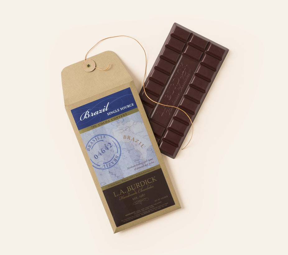 Take a tasting adventure of Brazil's distinctive cocoa beans and unique terroir. This light- to medium-bodied chocolate expresses beautiful hints of almond, lychee, and dried apricot. 70% cocoa content.