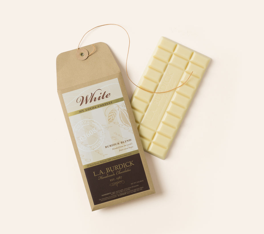 Indulge in the velvety richness and luscious vanilla notes of our Burdick Blend White Chocolate Bar, made with our signature house blend white chocolate.