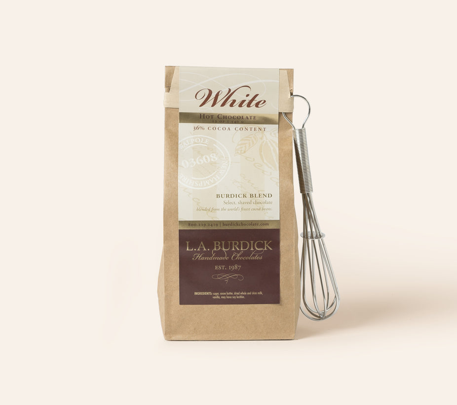 Rich with the creaminess of cocoa butter and sweetly redolent of vanilla, our White Drinking Chocolate is as wonderful at home as it is in our cafés and can be prepared the same way, either hot or iced.